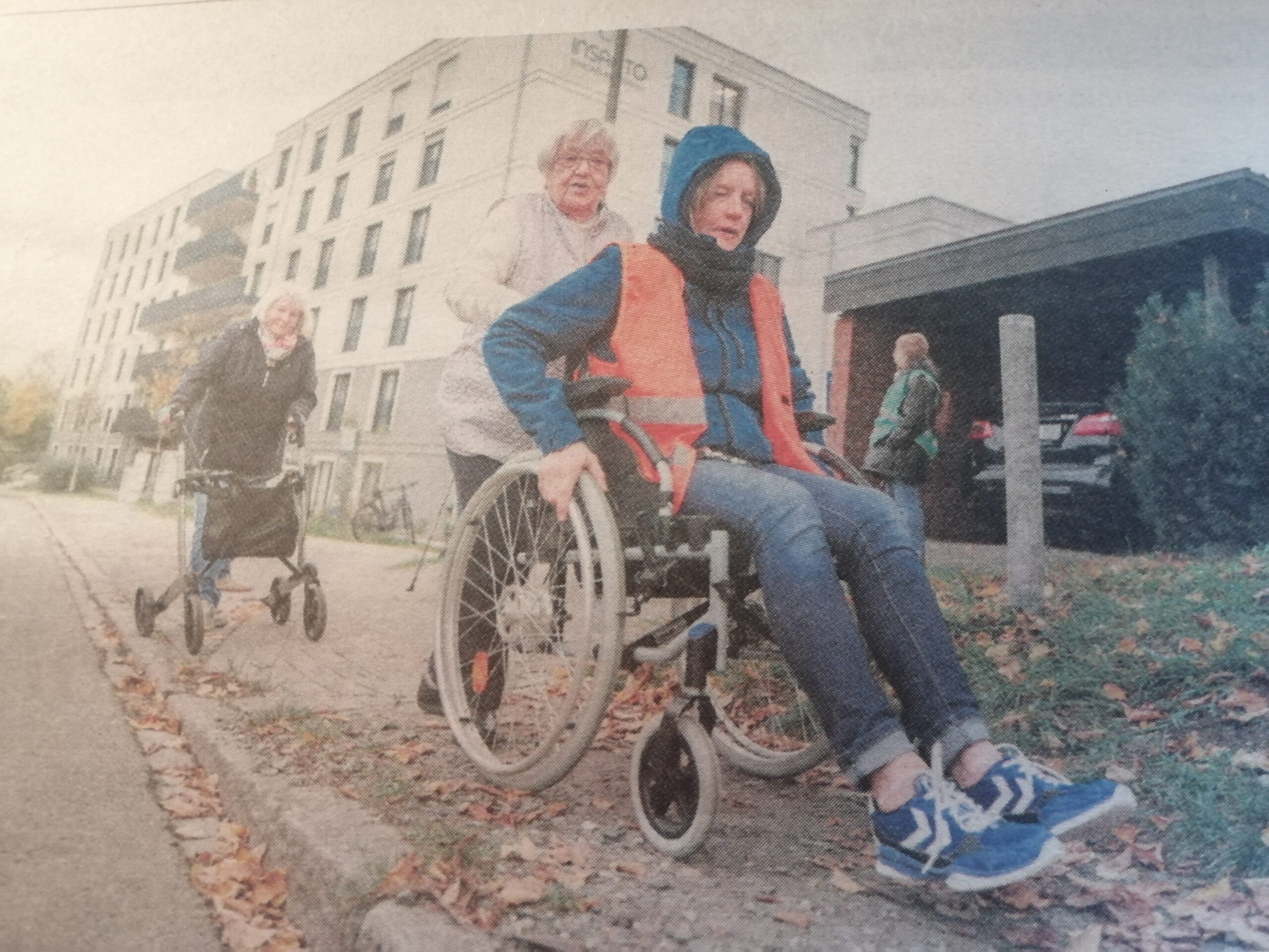 Am 15.102025 um 15 Uhr haben sich Anwohner, Bewohner aus der Tagesstätte Insanto, Mitglieder des Forums Mürwik und Mitstreiter von Fuss e.V mit Rollstühlen, Rollatoren und auf zwei Beinen auf den Weg gemacht, um zu demonstrieren, dass es so nicht weitergehen kann. Die Presse, Politiker der verschiedenen Fraktionen, und Vertreter der Verwaltung waren eingeladen. Nur Flensborg Avis und Herr Körber von der SPD Fraktion folgten der Einladung. Die Beteiligten wiesen auf viele Missstände hin und veranschaulichten die Problematik. Fortlaufend neue Bebauung, zunehmende Verkehrsdichte, keine Möglichkeit der sicheren Querung der Straße und unzureichender Fußwege u.a zur Bushaltestelle erschweren jetzt schon das Leben der Anwohner. Die Betroffenen fordern eine Querungsmöglichkeit in Höhe des Pflegeheimes, befahrbare Wege für Kinderwagen, Rollatoren und Rollstühle sowie ein vorläufiges Verkehrskonzept für die Bauphase „Twedtinger Feld“. In dieser Phase wird es zusätzlich starken Verkehr durch Baufahrzeuge geben. Unter den derzeitigen Verhältnissen wird es für alle Fußgänger zunehmend gefährlicher sich in diesem öffentlichen Raum zu bewegen. Das Forum Mürwik und alle Betroffenen hoffen und pochen auf eine zeitnahe Lösung dieser Problematik.
